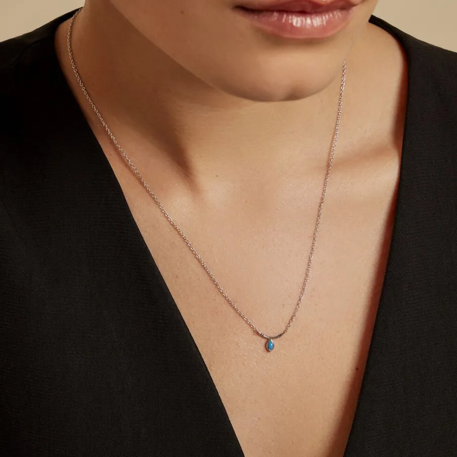 Collier Argent Blanc 925/1000 Goutte Turquoise Maille Jaseron 42+3cm