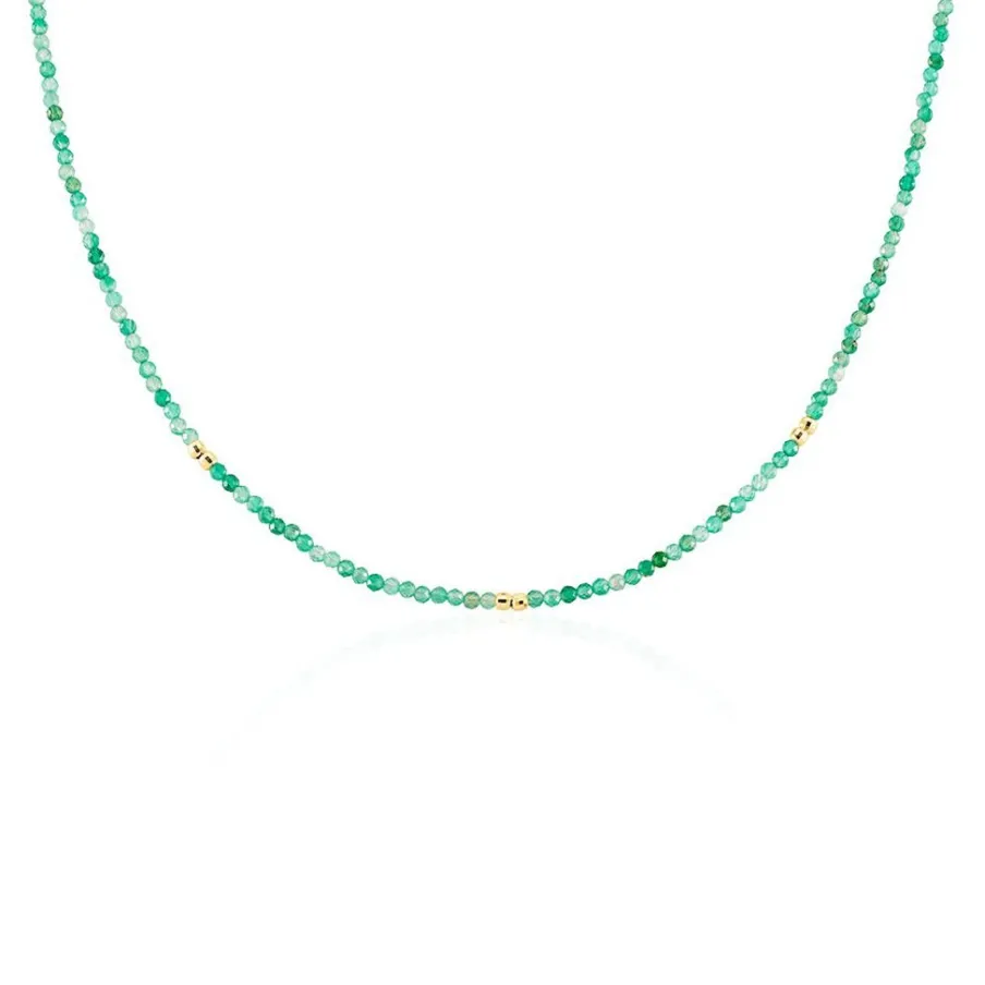 Collier Argent Jaune 925/1000 Agate Vertes Et Boules Argent Jaune 36+2cm