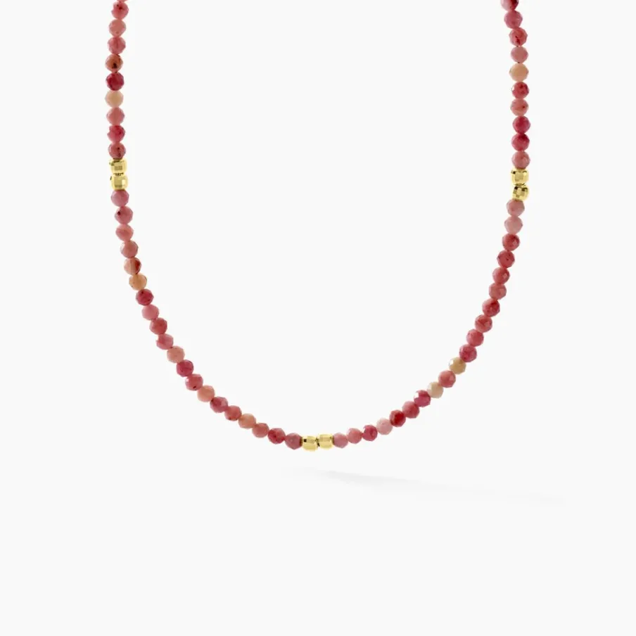 Collier Argent Jaune 925/1000 Rhodonite Roses Et Boules Argent Jaune 36+2cm