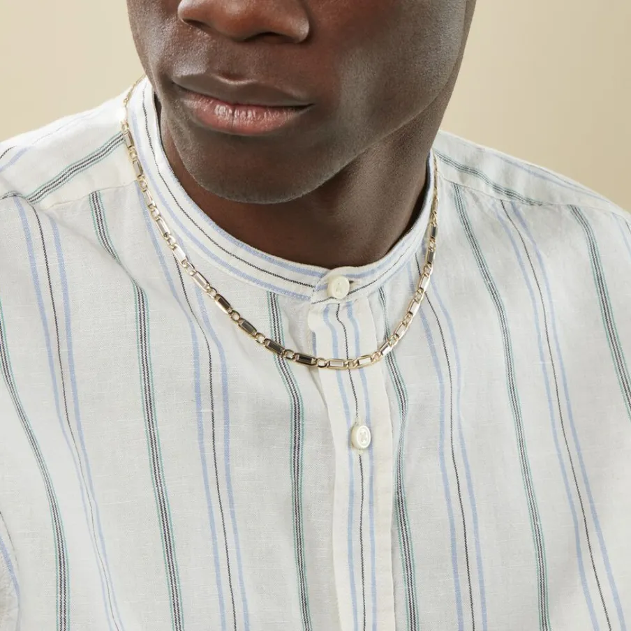 Collier Maille Or Bicolore 375/1000 Maille Plaquette Alternée 1/1 Largeur 4.7mm 55cm
