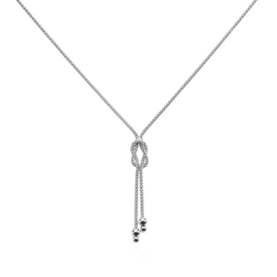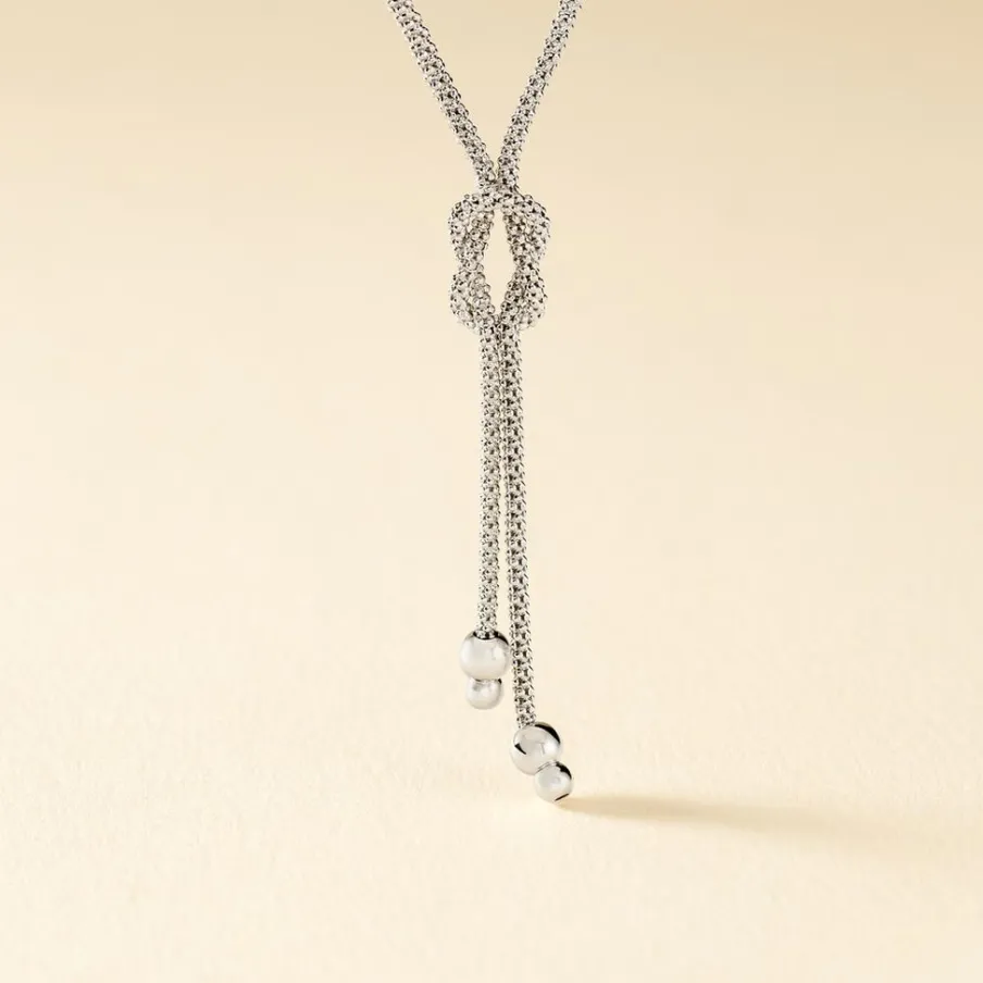 Collier Argent Blanc 925/1000 Forme Cravate Noeud Marin Maille Pop Corn 45cm
