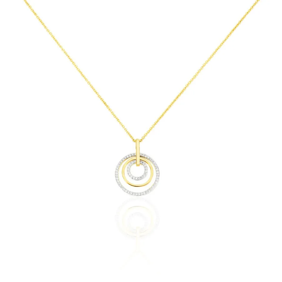 Collier Or Jaune 375/1000 Triple Cercles Pavage Diamants 42cm