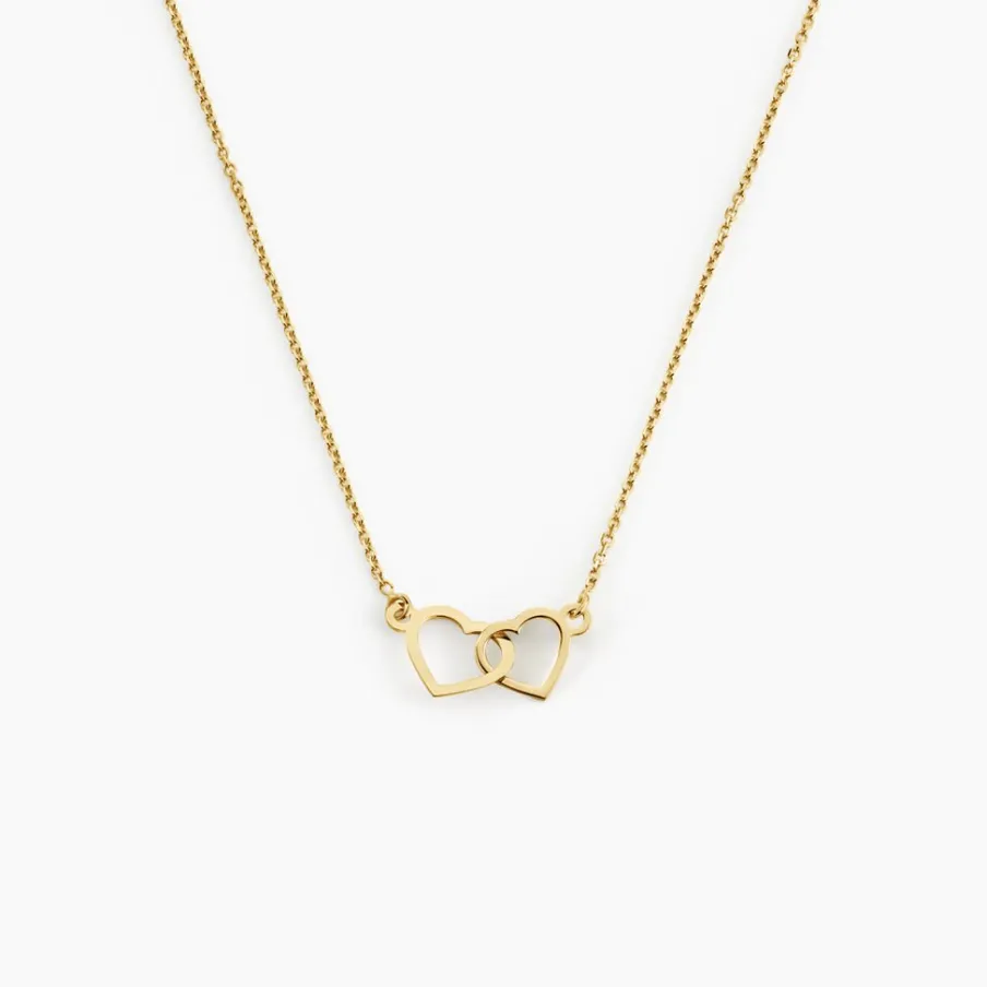 Collier Or Jaune 375/1000 Double C艙urs Ajoures Entrelaces Maille Jaseron 42cm