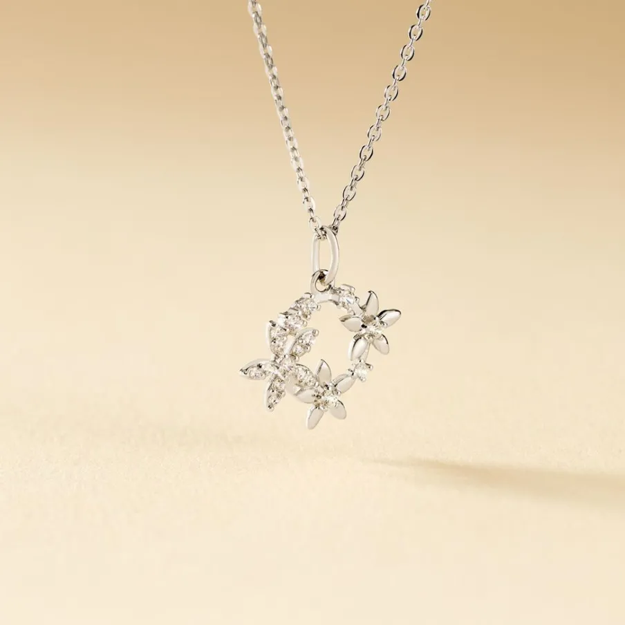 Collier Argent 925/1000 elinia Cercle Motifs Fleurs Semi Pavage Oxydes De Zirconium 42cm