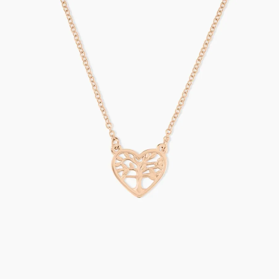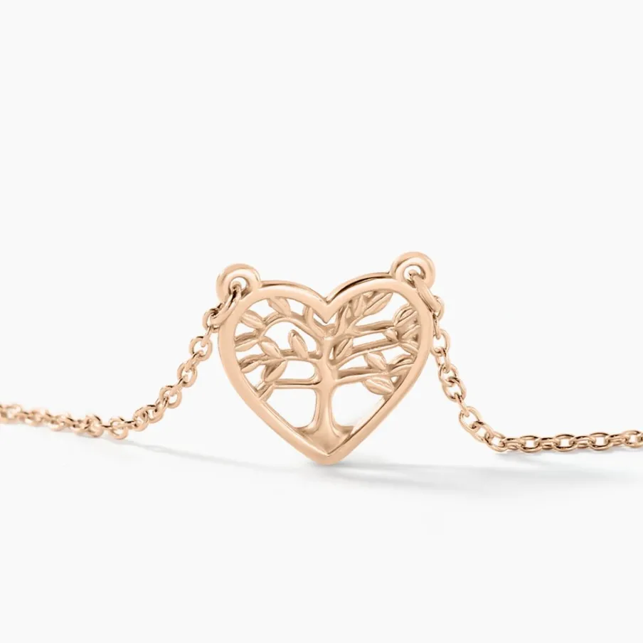 Collier Argent Rose 925/1000 Arbre De Vie Coeur Maille Forcat 40cm