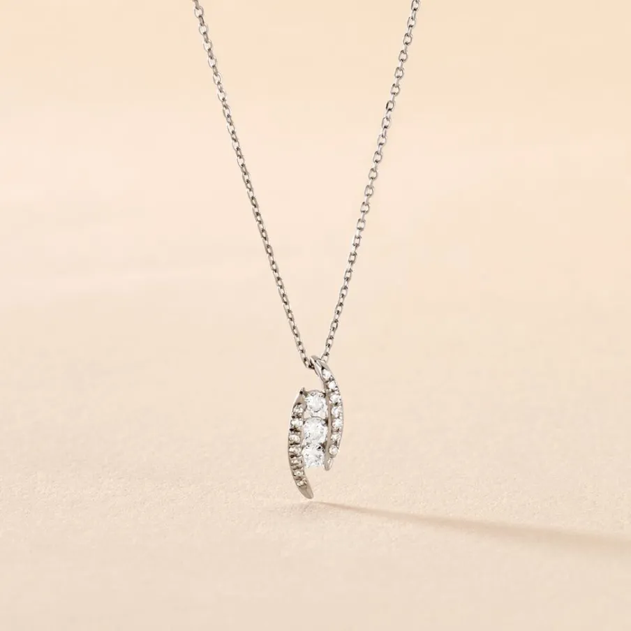 Collier Or Blanc 375/1000 Maille Forçat Eternité Trilogie Diamants 42cm