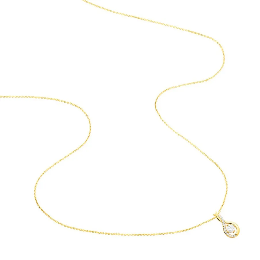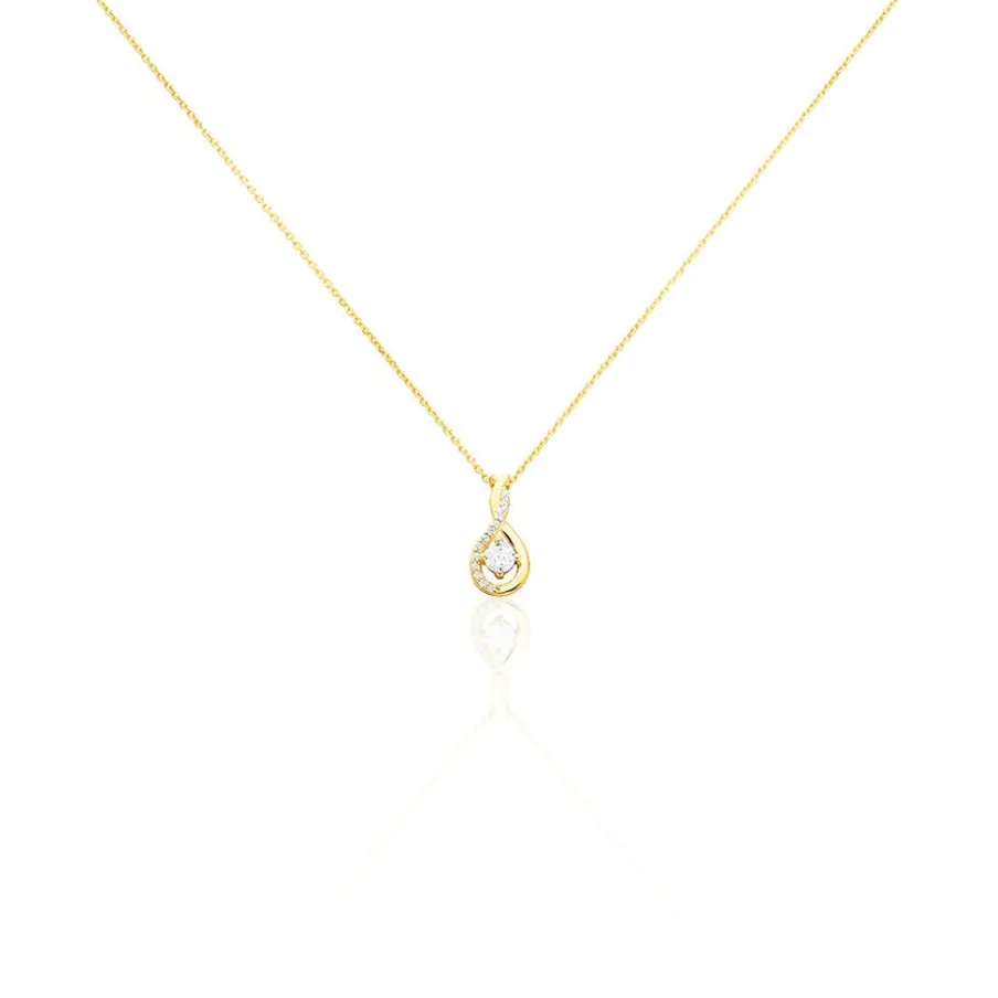 Collier Or Jaune 375/1000 Goutte Entrelacée Oxydes De Zirconium 43cm