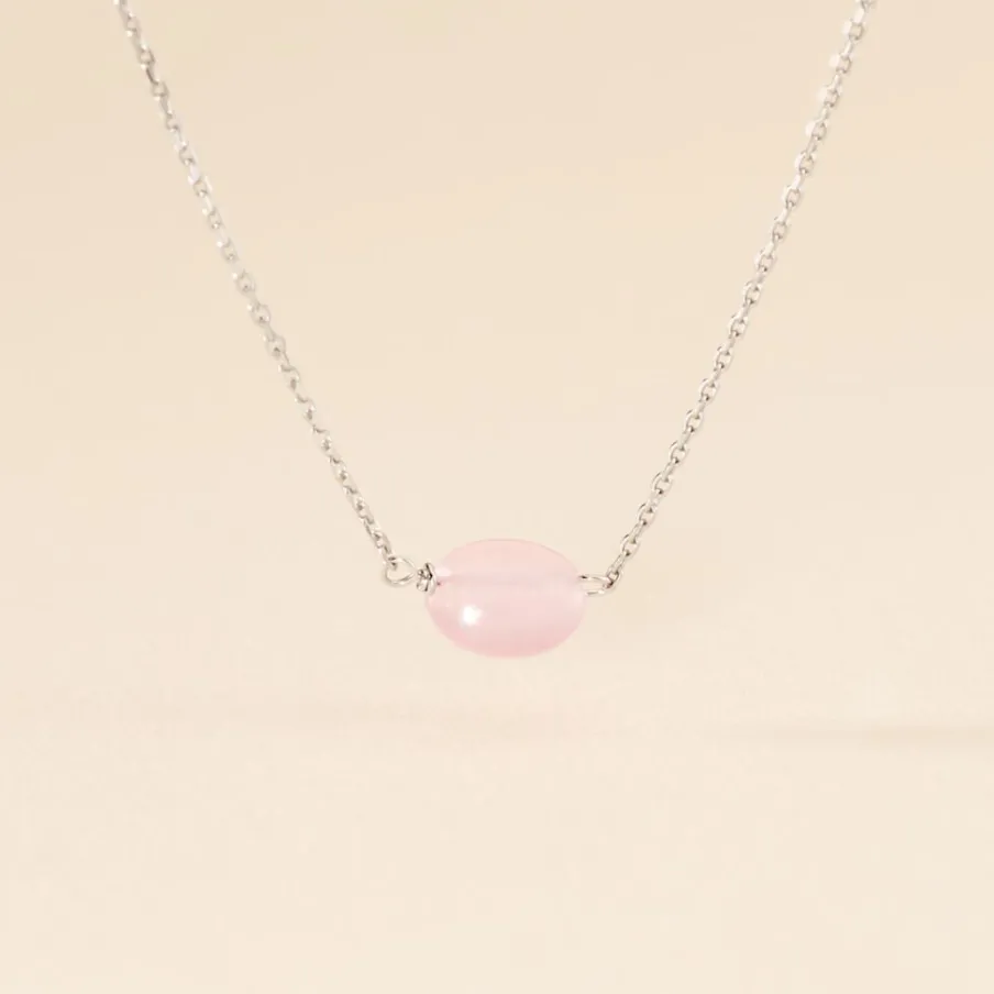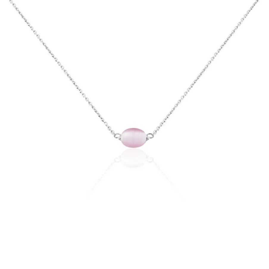 Collier Argent Blanc 925/1000 Maille Forcat Quartz Rose 38cm
