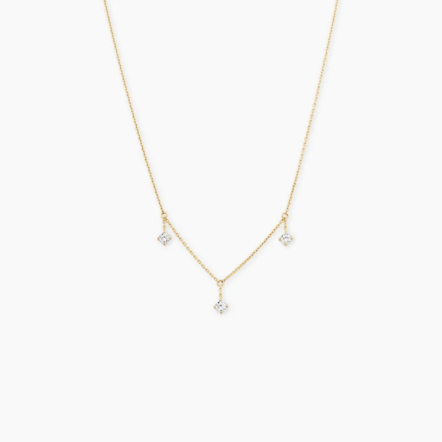 Collier Or Jaune 375/1000 Pampille Trilogie Oxyde De Zirconium Serti Griffes Maille Forcat 40+2cm