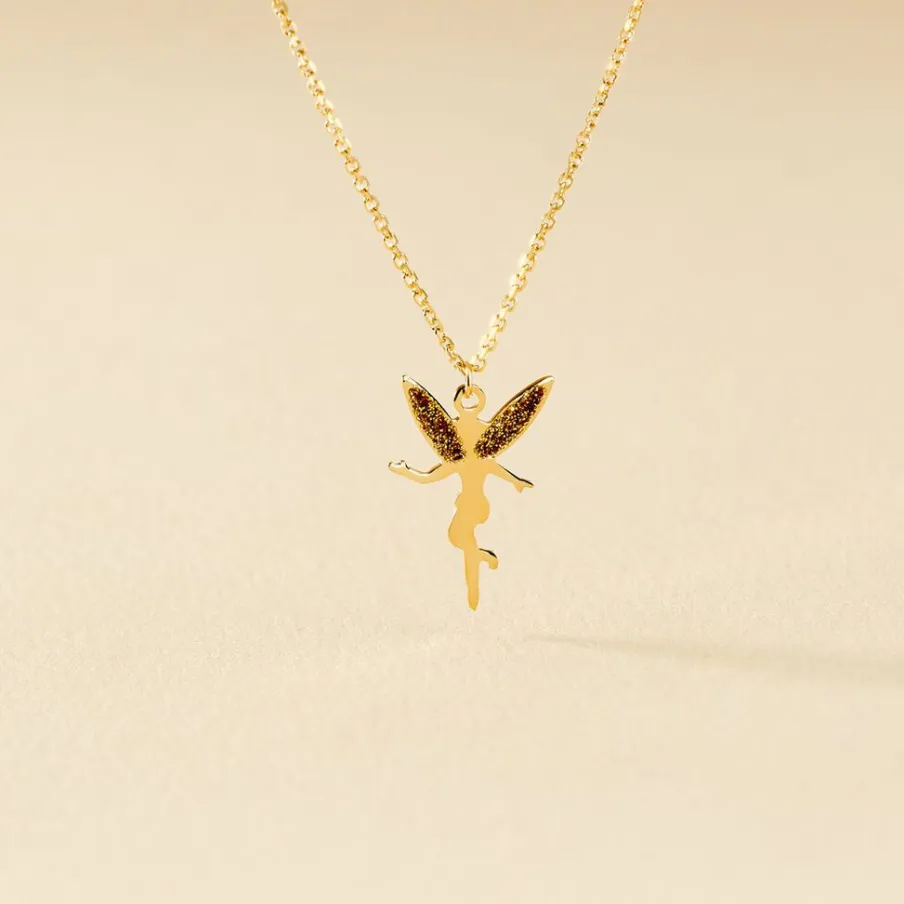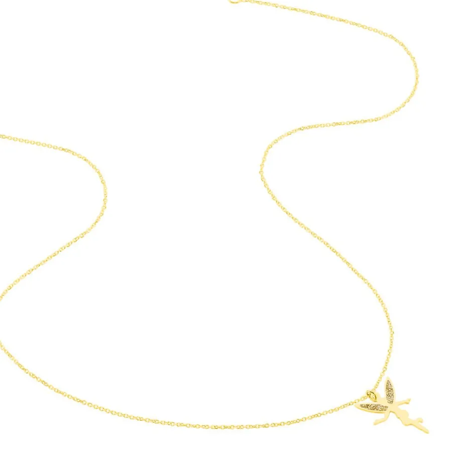 Collier Or Jaune 375/1000 Motif Fee Glitter Dore Maille Jaseron 38cm
