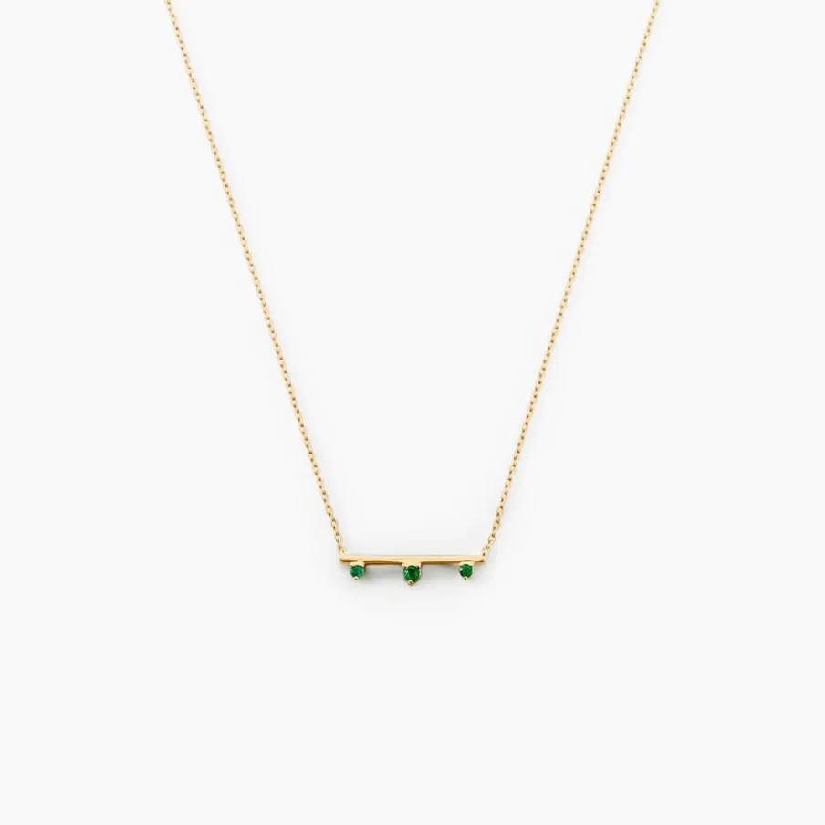 Collier Or Jaune 375/1000 Trilogie Emeraude 0.04cts Serti Griffes Sur Barre Maille Forcat 40+2cm