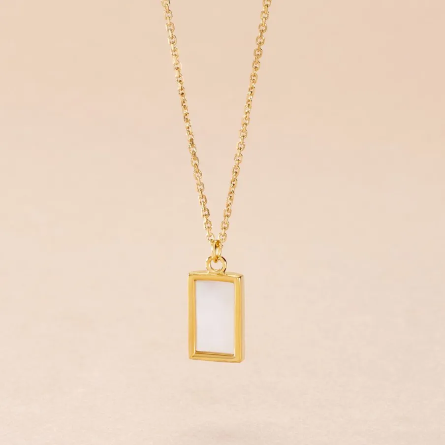 Collier Or Jaune 375/1000 Nacre Rectangle Maille Jaseron 40+2cm