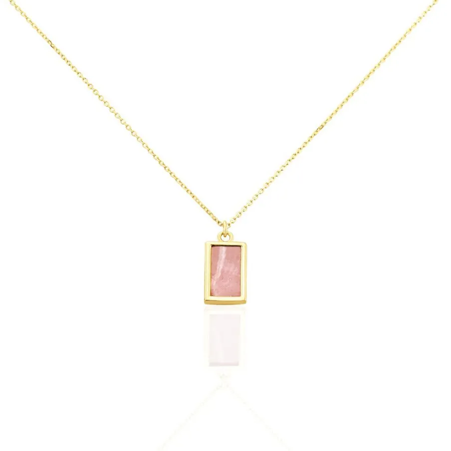 Collier Or Jaune 375/1000 Rhodochrosite Rectangle Maille Jaseron 40/42cm