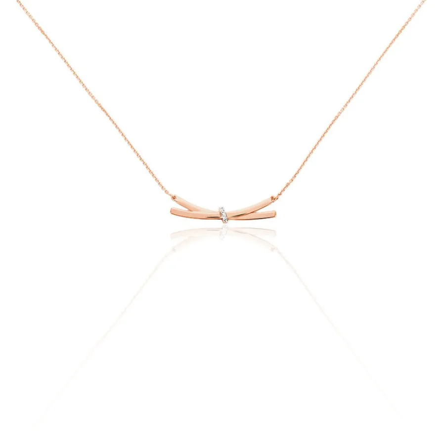 Collier Or Rose 375/1000 Effet Noeud Diamants 0.009cts 43cm