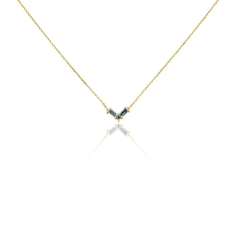 Collier Baguette Or Jaune 375/1000 Topaze Bleu Sky Serti 4 Griffes Maille Forcat 40+2cm