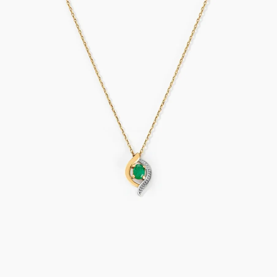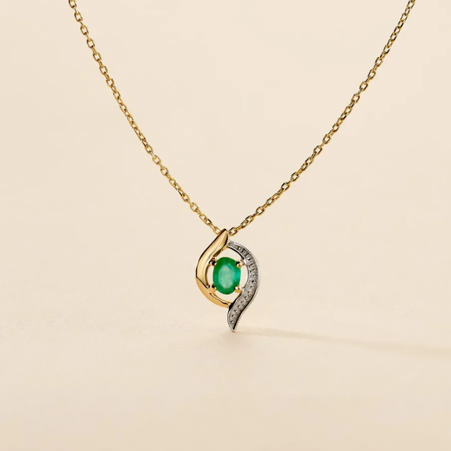 Collier Or Jaune 375/1000 Forme Vague Emeraude 43cm