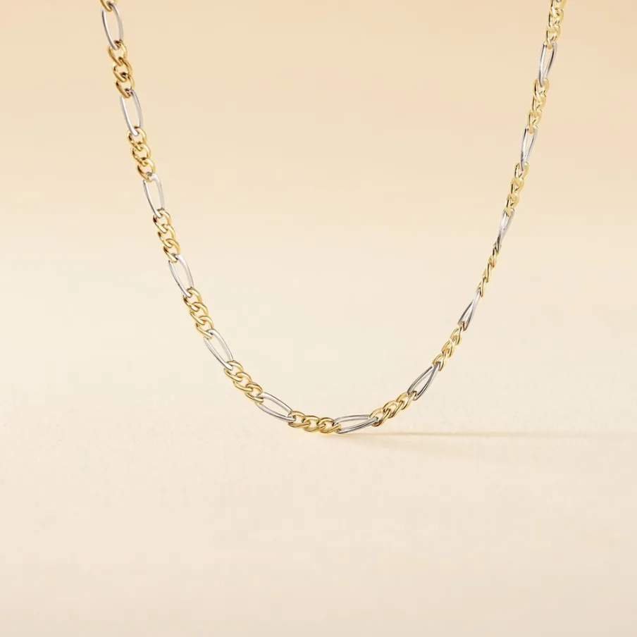 Collier Maille Or Bicolore Jaune Et Blanc 750/1000 Maille Alternee 1/3 Largeur 2.2mm 42cm