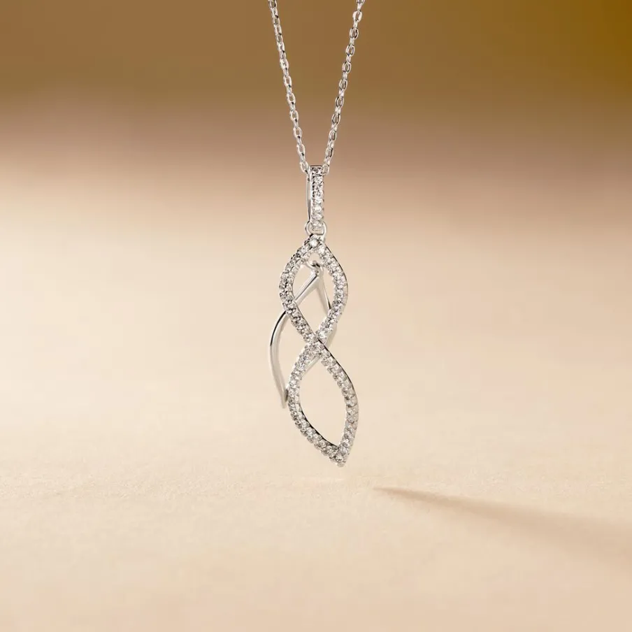 Collier Argent 925/1000 malika Formes Gouttes Torsadees Entrelacees Pavage Oxydes De Zirconium 45cm