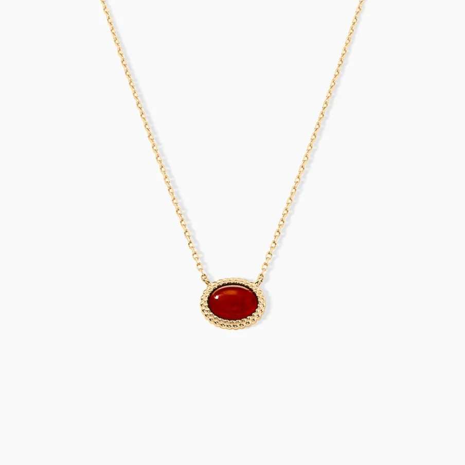 Collier Plaqué Or Jaune Cabochon Ovale Pierre Rouge Maille Forcat 42+3Cm