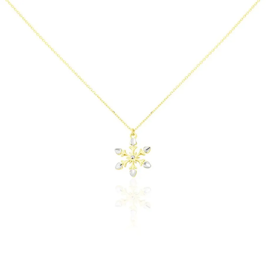 Collier Or Bicolore 375/1000 Fleur Effet Diamante Maille Jaseron 40/42cm