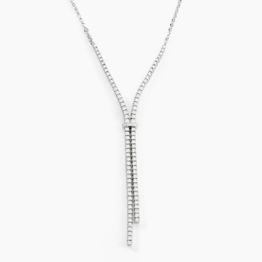 Collier Or Blanc 375/1000 Moscou Rivière De Diamants Sertis Griffes 50cm