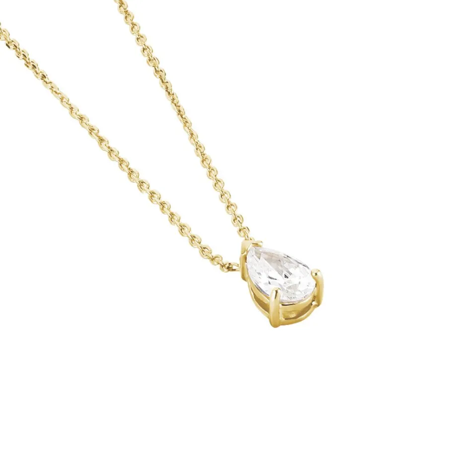 Collier Plaque Or Jaune 1 Oxyde De Zirconium Poire Serti 3 Griffes 45cm