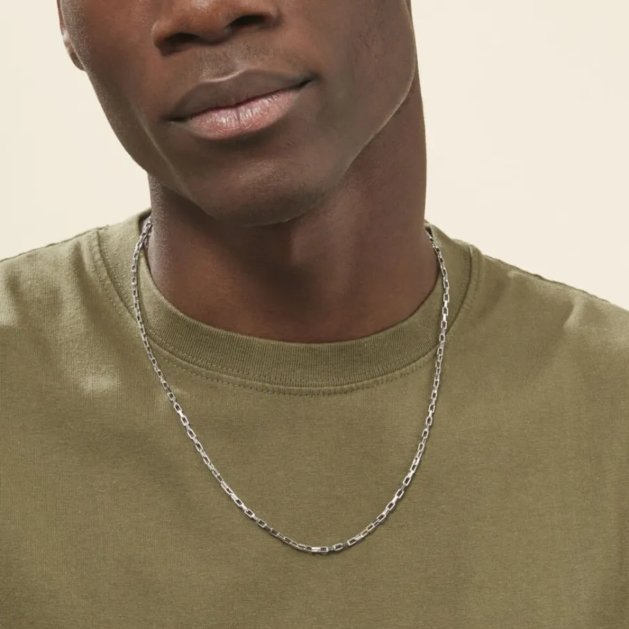 Collier Argent Blanc 925/1000 Maille Cheval Epaisseur 2.6*1.2mm 55cm