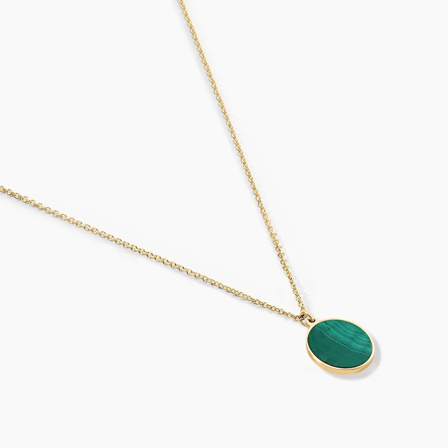 Collier Or Jaune 375/1000 Ovale Malachite Verte Maille Jaseron 40+2Cm