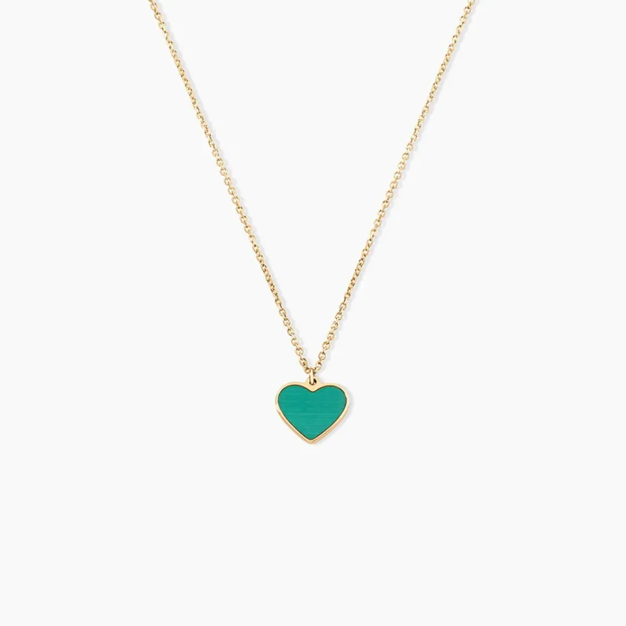 Collier Or Jaune 375/1000 C艙ur Malachite Verte Maille Jaseron 40+2Cm