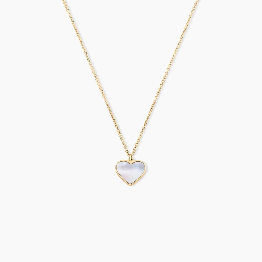Collier Or Jaune 375/1000 Coeur Nacre Maille Jaseron 40+2Cm