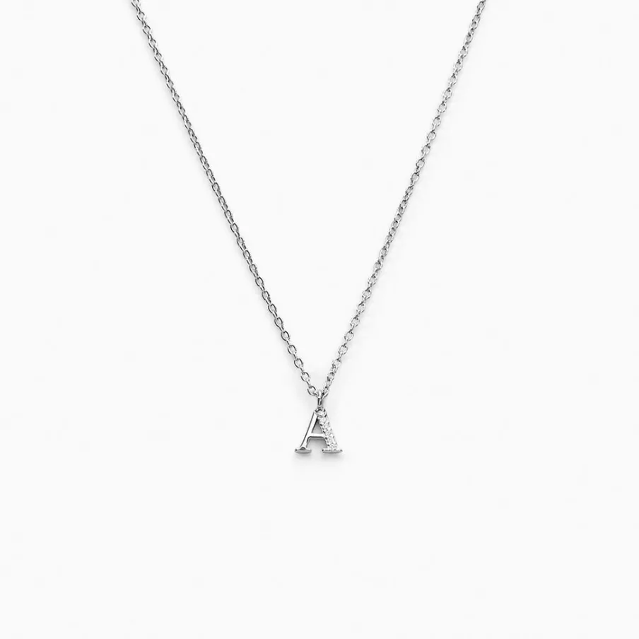 Collier Argent Blanc 925/1000 Lettre A Semi Pavage Oxydes De Zirconium Maille Forçat 38+3cm