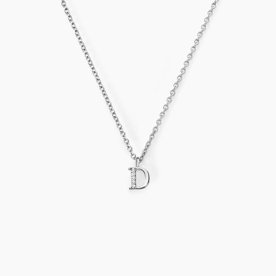 Collier Argent Blanc 925/1000 Lettre D Semi Pavage Oxydes De Zirconium Maille Forçat 38+3cm