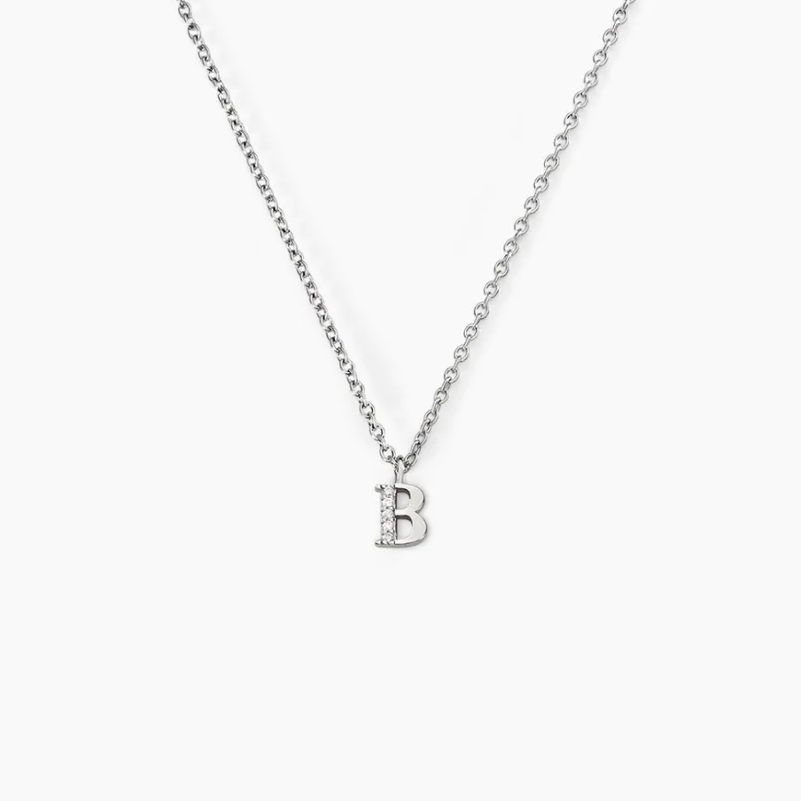 Collier Argent Blanc 925/1000 Lettre B Semi Pavage Oxydes De Zirconium Maille Forçat 38+3cm