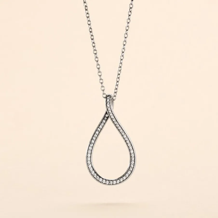 Collier Argent 925/1000 netta Goutte En Volute Pavage Oxydes De Zirconium 50cm