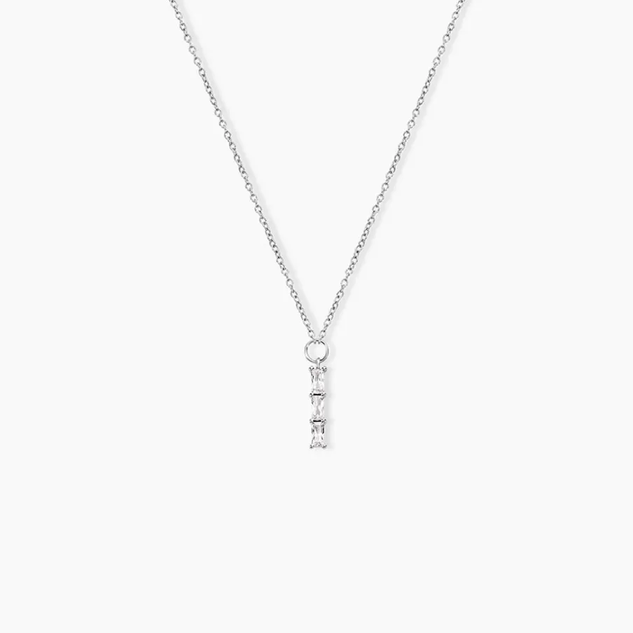 Collier Argent Blanc 925/1000 Barrette Oxydes De Zirconium Serti Griffes Maille Forçat 42+3cm