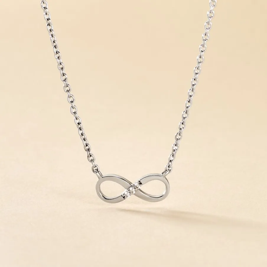 Collier Argent Blanc 925/1000 Motif Infini Oxydes De Zirconium Maille Forçat 45cm