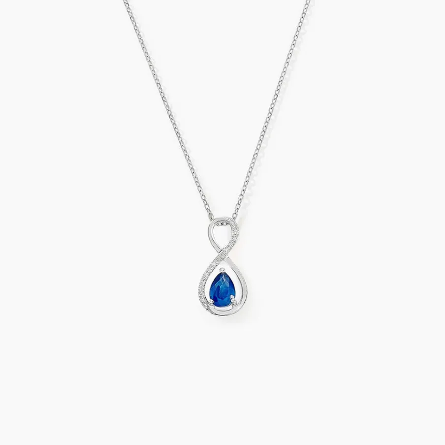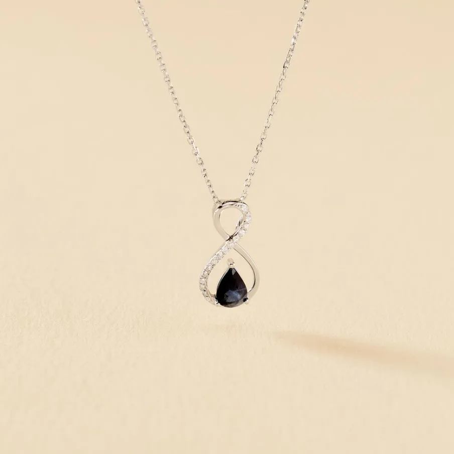 Collier Or Blanc 375/1000 Saphir Central Et Pavage Diamants 42cm