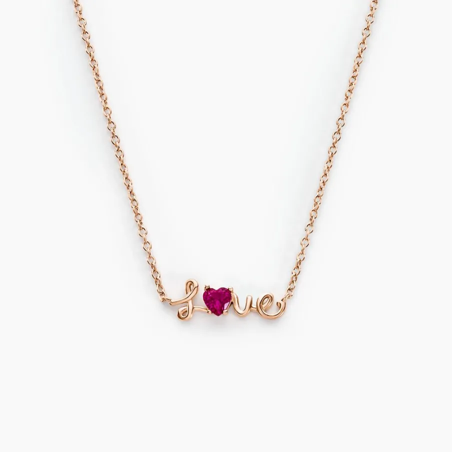 Collier Argent Rose 925/1000 C艙ur Message Love Oxyde De Zirconium Fuchsia Serti 4 Griffes Maille Forçat 42+3cm
