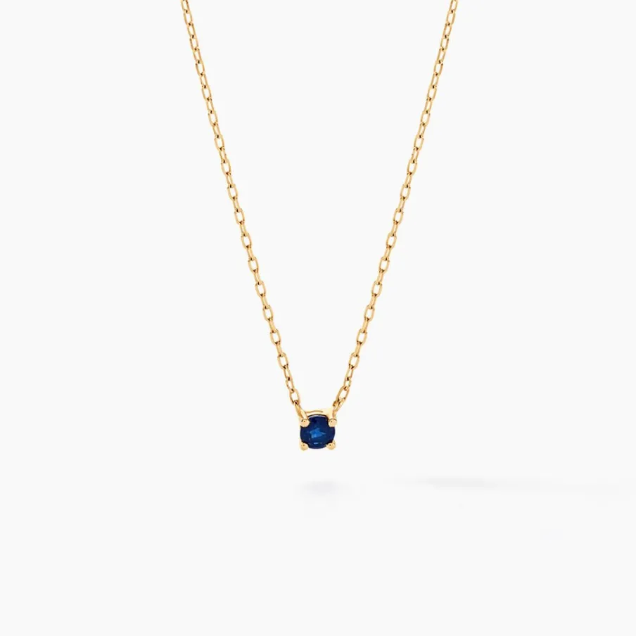 Collier Or Jaune 375/1000 Solitaire Saphir 0.12cts Serti Griffes Maille Forcat 40+2cm