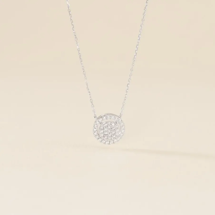 Collier Or Blanc 750/1000 Entourage Diamants Synthétiques Maille Forçat 40+5cm