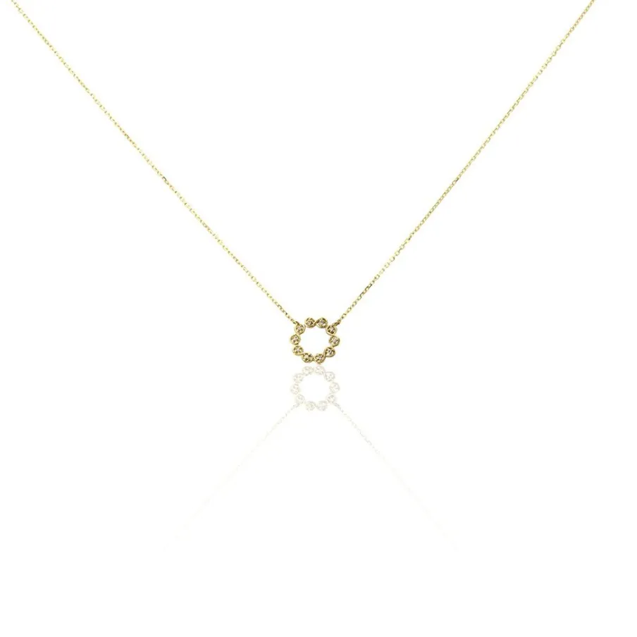 Collier Or Jaune 375/1000 Motif Cercle Rond Diamants Maille Forcat 40+2cm