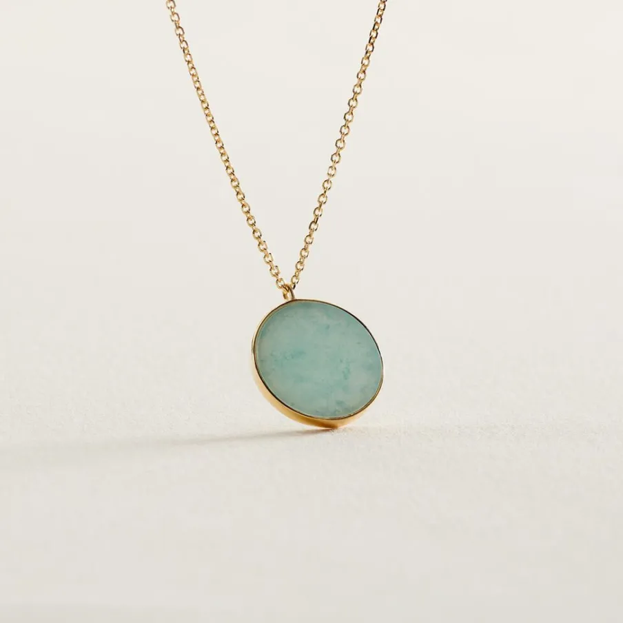 Collier Or Jaune 375/1000 Cercle Amazonite Maille Jaseron 40+2cm