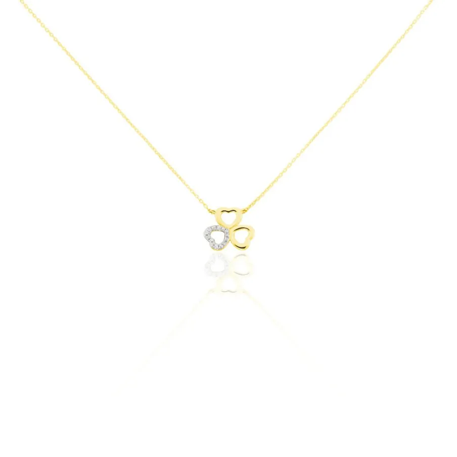 Collier Or Jaune 375/1000 Forme Triple C艙urs Maille Forçat Pavage Diamants 42cm