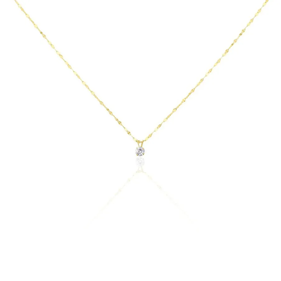 Collier Or Jaune 375/1000 Oxyde De Zirconium Serti Griffes Maille Lumina 42cm