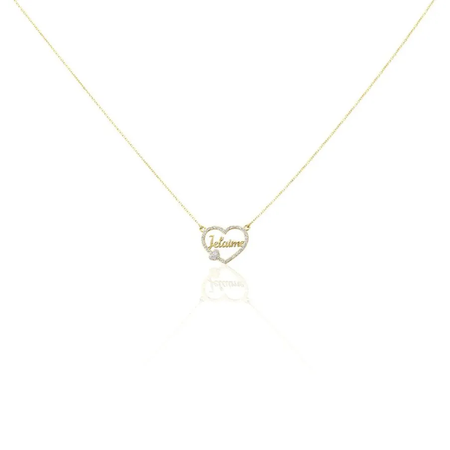 Collier Or Jaune 375/1000 Double C艙urs Glitter Argente Message Je T’aime Maille Jaseron 40+2cm