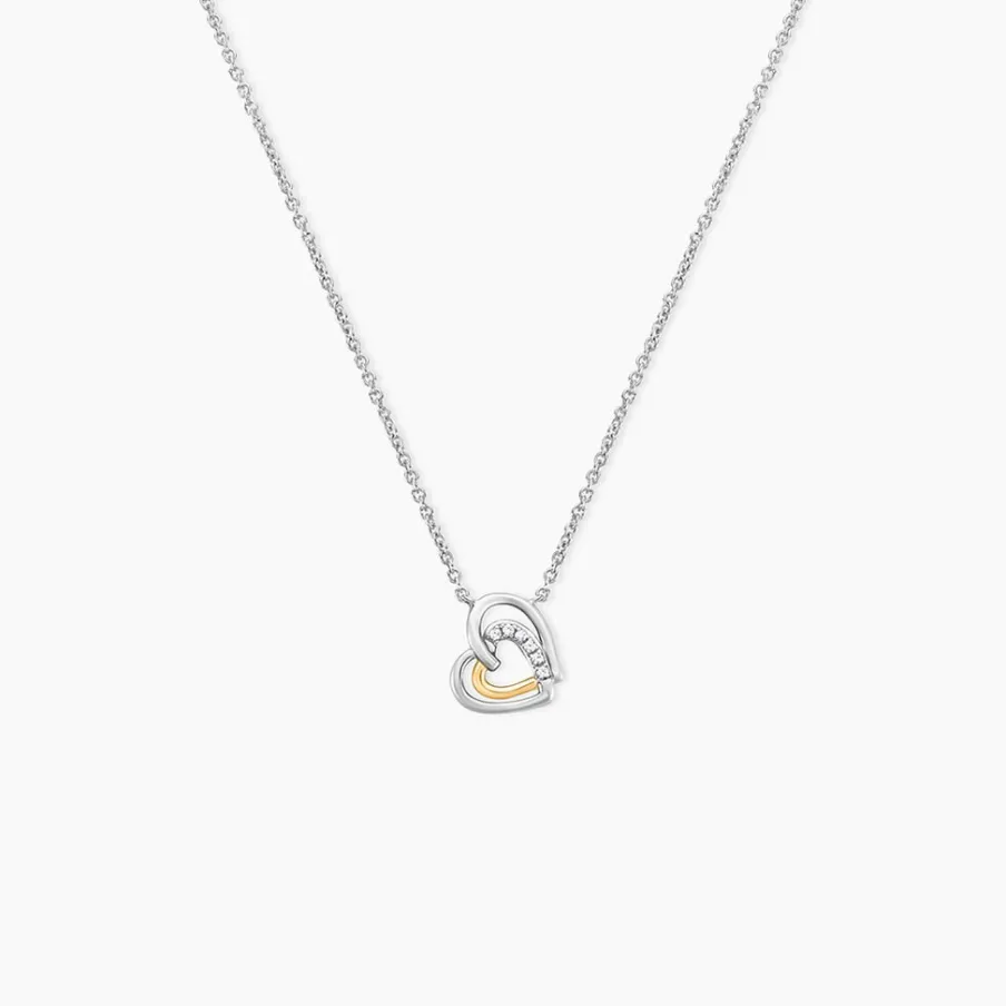 Collier Or Jaune 375/1000 Et Argent Blanc 925/1000 Double C艙urs Oxydes De Zirconium Blancs Maille Jaseron 42+3Cm