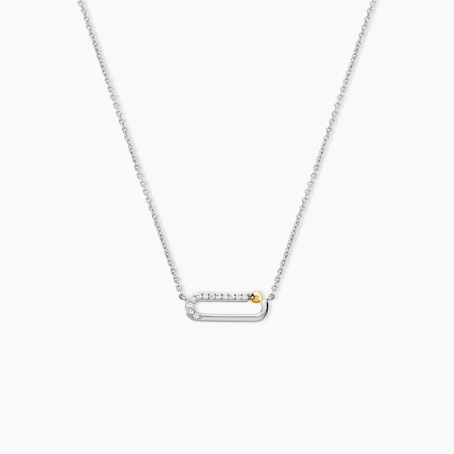 Collier Or Jaune 375/1000 Et Argent Blanc 925/1000 Ovale Ajoure Oxydes De Zirconium Blancs Maille Jaseron 42+3Cm
