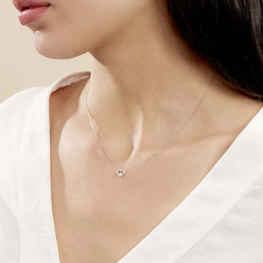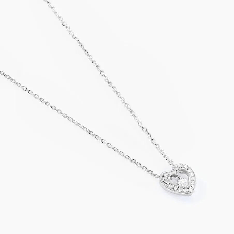 Collier Or Blanc 375/1000 Maille Forçat Pureté C艙ur Diamant Pavage Diamants 42cm