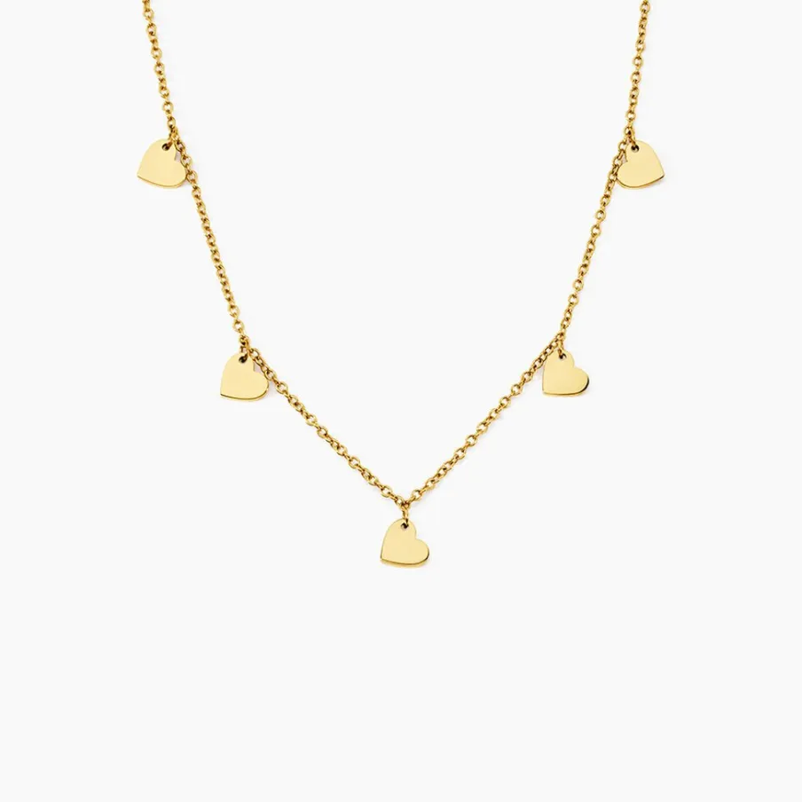 Collier Acier Inoxydable Jaune Pampilles Forme C艙ur Maille Forçat Longueur 42+5cm