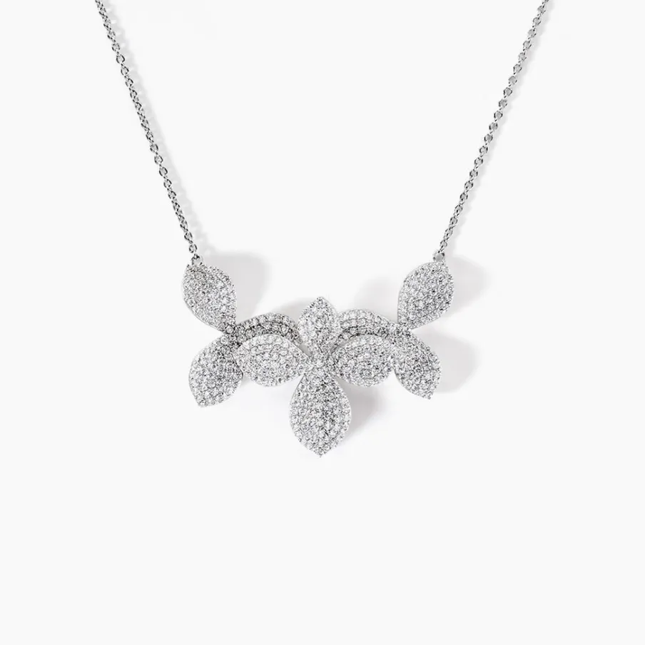 Collier Argent Blanc 925/1000 3 Fleurs Pavage Oxydes De Zirconium Maille Forçat 42+3cm